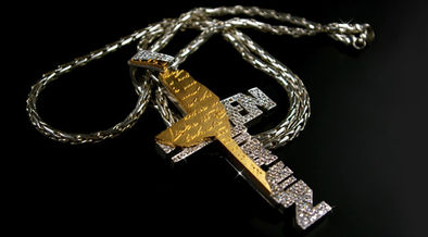 Among other things, an individual necklace with special turning technique and portrait mosaic was designed for the rapper Spinning 9. You can see this jewelry unique in the videos of the rapper as well as in a video of the US icon Soldier Boy.
